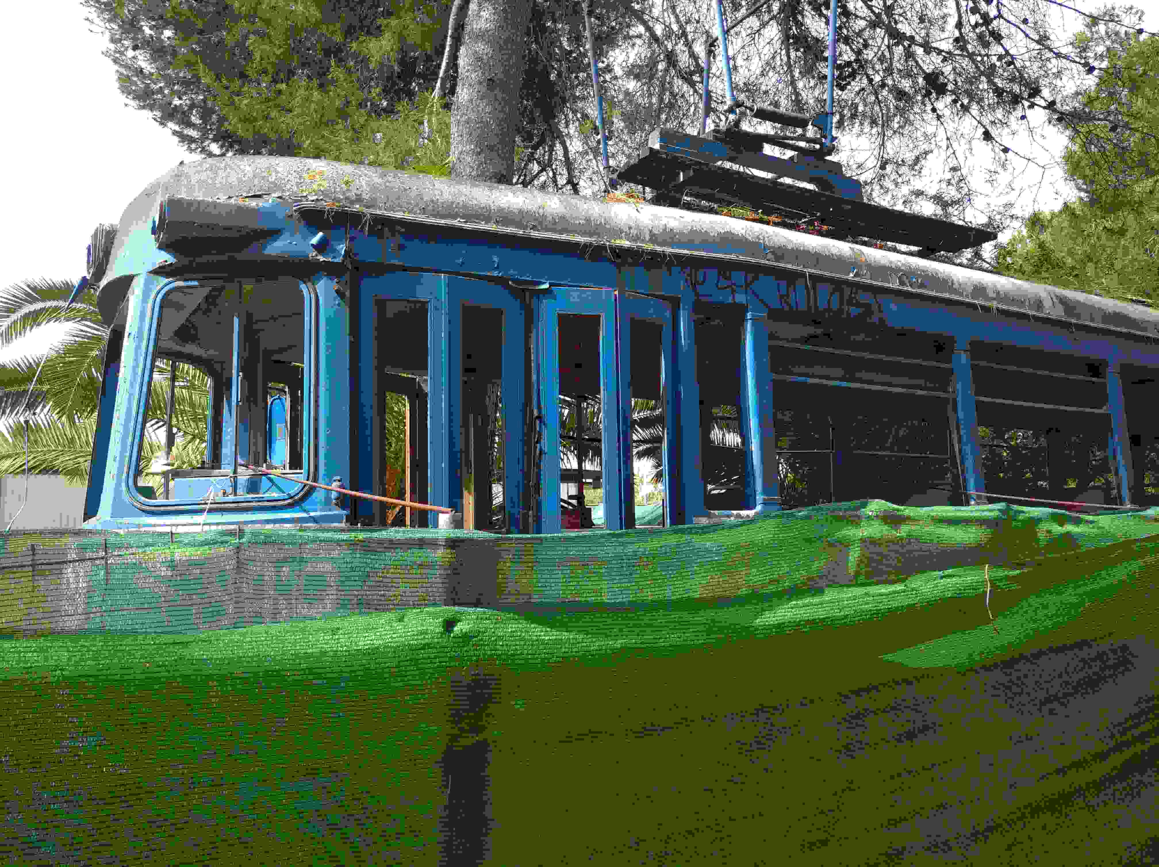 Se trata de una unidad MRM de los tranvias conocidos como "Fabiolos", que importados de Bélgica circularon en su última etapa desde la estación principal en la linea de Pont de Fusta (Puente de madera) al Grao de Valencia con una longitud de 5 kms.