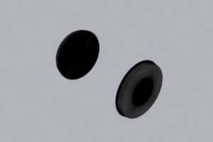 El tercer método es el que yo llamo el "método del rodillo transparente". Esta técnica la descubrí viendo el "making of" de uno de los modelos de Train Artisan. La técnica utiliza las hojas de textura para modelar la parte plana de los rodales (igual que el método brill) pero modela completamente la banda de rodadura. Sin embargo, en lugar de utilizar un cilindro en cada rueda, utiliza el mismo para las dos. Por último, para evitar que parezca el coche de los picapiedra se le aplica una textura tranparente en la parte interior, y opaca en los extremos (en la parte que corresponde a las bandas de rodadura). Para muestra un botón (ver adjunto)