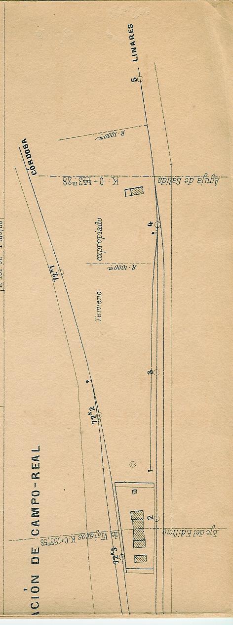 Yo siempre conocí este ferrocarril como de Linares a Puente Genil. En todo caso debió de llamarse de Campo Real a Linares, pero supongo que como Campo Real era un descampado a 4 km. de Puente Genil, pueblo importante donde los haya, pues se comería el nombre. La kilometración empieza en Campo Real, aunque la vía empezaba en Puente Genil. Eran 4 km. que llevaban la kilometración de la línea de Córdoba a Málaga.