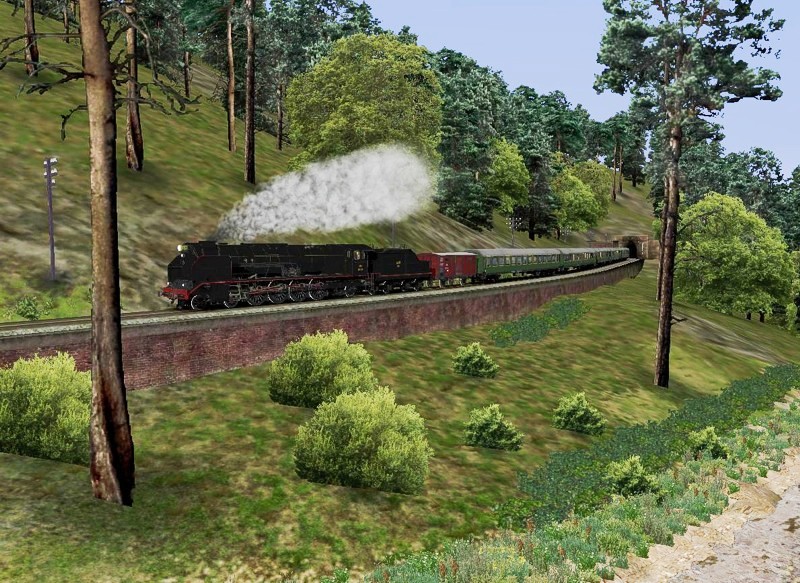 He colocado primero la vía ancha, hundida en el terreno.