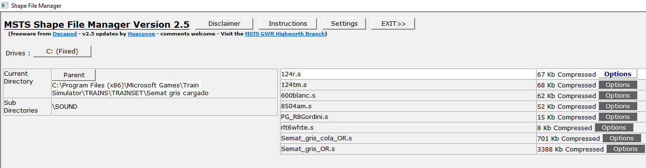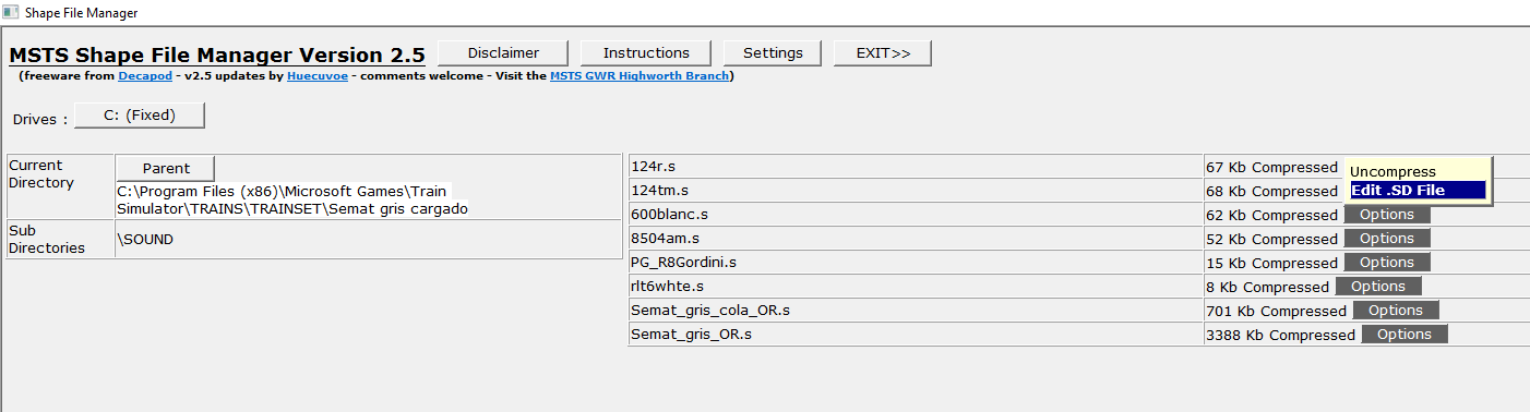 Luego, teneis que pulsar OPTIONS en el archivo .s del que se quiera crear un .sd-