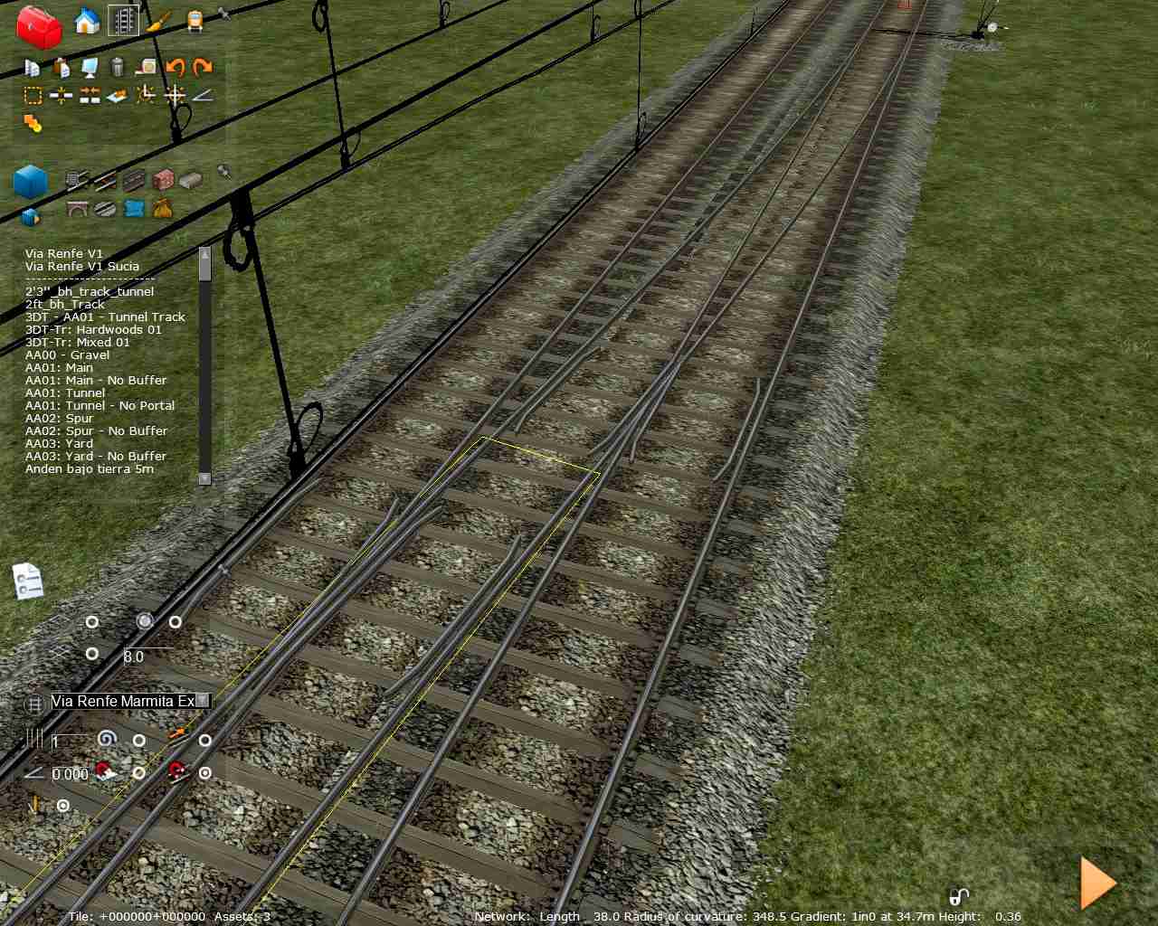 Abro este hilo para comentaros un pequeño descubrimiento con el que me topé por casualidad. Como ya hemos hablado anteriormente sobre las vías la entrevía 'normal' de Adif es de 4 metros, siempre que sea en líneas para velocidades <=160, pero el RW digamos que es un poco caprichoso con entrevías estrechas, produciendo errores en los corazones y al realizar desvíos dobles. Pues bien, trasteando con una ruta de pruebas donde hago todo tipo de combinaciones de vías descubrí por casualidad que usando la herramienta de pegar la vía al terreno no sólo no aparece el error en los corazones, sino que no pone ninguna pega al crear aparatos de vía unos detrás de otros, cosa que sin usar esta herramienta no se puede conseguir si no es con entrevías superiores. No le encuentro la lógica a esto pero funciona, que es lo importante. En las vías de Camber con la entrevía normalizada a 4 metros se puede hacer de todo y sin problema alguno usando esta herramienta, sin embargo las de Pere sí que dan algún problema en desvíos dobles (será cuestión de modificar algún valor). La forma de proceder sería plantar la vía general, pegar el terreno a la vía y para terminar plantar el desvío con la herramienta pegar al terreno (al estar ya pegado a la vía la que pongamos seguirá el mismo patrón que las generales) y listo.
