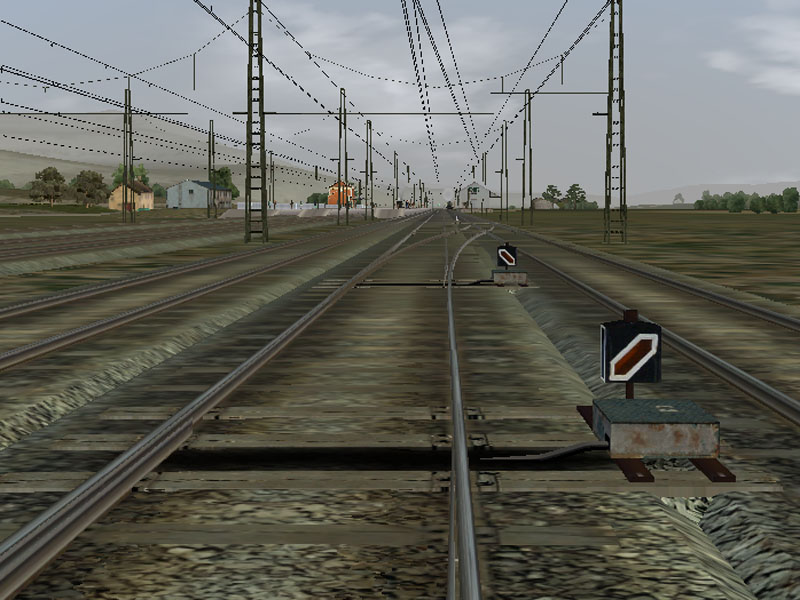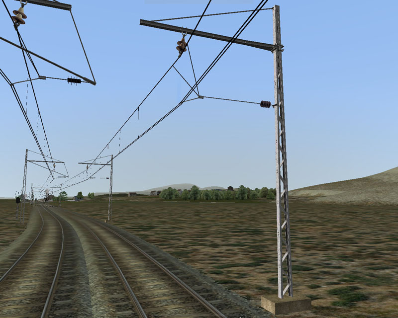 Por último, la vía incorpora, si así lo desea el creador de la ruta, catenaria de doble hilo de contacto, que irá acompañada de unos postes P2, todo ello de la compañía del Norte: