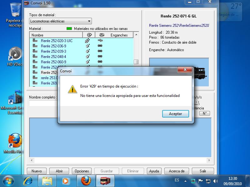 Hola, ese error es porque falta un archivo necesario para el funcionamiento del Convoi (el Comdlg32.ocx) que, por la causa que sea, ha desaparecido de tu pc. A mí me pasó hace tiempo cuando tenía Xp.