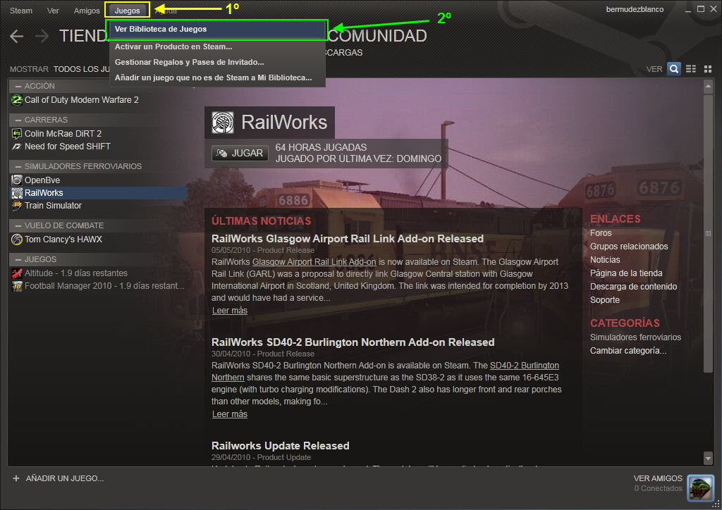 Abres Steam, haces clic en Juegos y luego en Ver Biblioteca de Juegos: