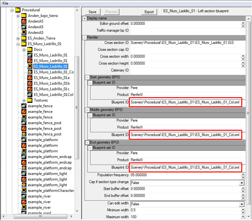 1. Objetos proceduralesUn objeto procedural es un elemento 3D del cual tan solo se informa al simulador de su perfil, procediendo el motor de la simulación a generar el volumen del objeto por extrusión de dicho perfil, ajustando dicho desarrollo a un perfil recto, curvo o mixto que se determina en el momento de situarlo en una escena del simulador (o lo que viene a ser una ruta).