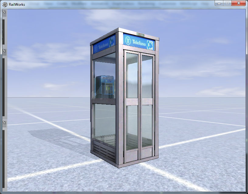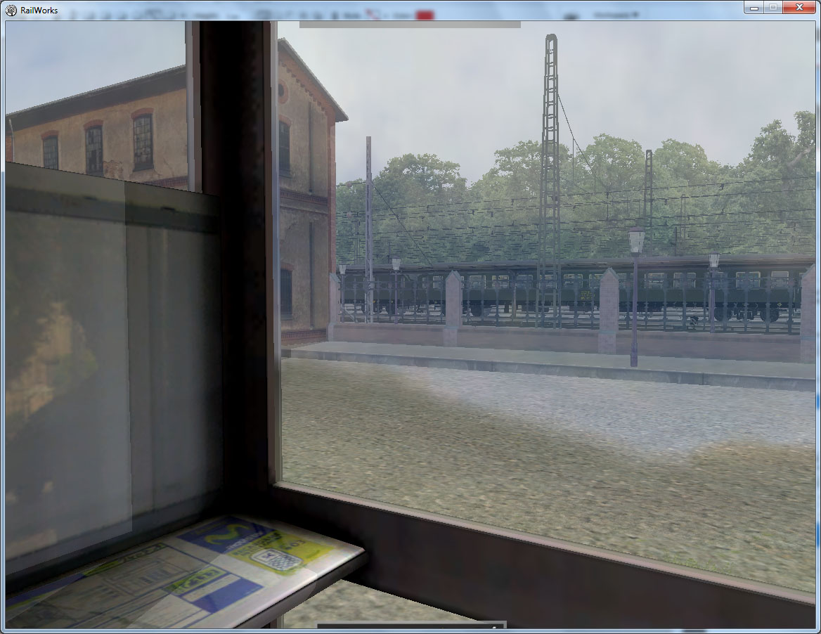 "TrainGlass.fx" es un shader específico para cristales, con efecto de brillo sobre su superficie (al igual que en el caso de los metales) reflejos del entorno sobre ellos y transparencia y coloración graduables. Su uso es recomendable para aquellos cristales que estarán cerca de la cámara del simulador, puesto que para un edificio que se verá siempre a lo lejos no es preciso malgastar los recursos de nuestro ordenador en su representación, y en particular ventanas de vehículos: locomotoras, coches y vagones, edificaciones ferroviarias cercanas al trazado: marquesinas, estaciones, torres de enclavamientos, etc., y en general edificios modernos llenos de cristal :D .