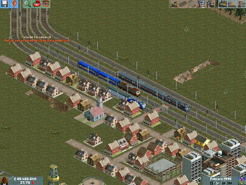 Os explico, me he creado un mapa totalmente llano, con muchas industrias. Para ver hasta donde podría llegar y a cuantos trenes podría hacer jaja. Lo empece en el año 1995 justo, con ciudades pequeñas apenas de 500 habitantes. Ahorra llevan algunas mas de 60.000 habitantes, y lógicamente las estoy encerrando para que no crezcan porque madre mía. Llevo unos 130 trenes, 14 aviones y unos 20 tranvías.