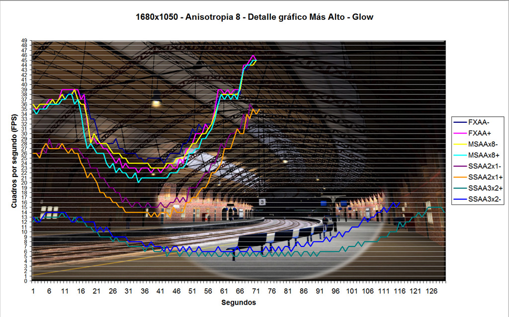 Impacto en rendimiento, según niveles de antialiasing (clic para agrandar):