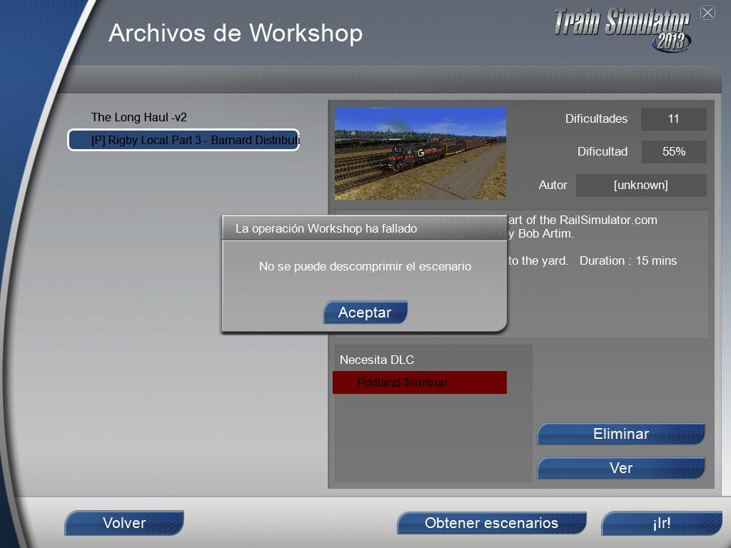Una vez activada, ve al menú principal > Workshop > Conseguir escenarios. Se te abrirá una ventana similar a las del cliente STEAM. Allí tienes los escenarios que se han publicado en el Workshop de Railworks. Elije el que más te guste y selecciona 'Subscribirse'. El escenario se descarga automáticamente y se instala. Cierra el Workshop del cliente STEAM. Podrás ver el nuevo escenario en el Workshop de tu simulador.